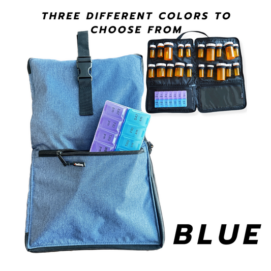 Razbag Medication Bag: Stylish, Secure Organizer with Pill Bottle Storage. Includes Weekly Pill Box. Total Medication Solutions! - Blue
